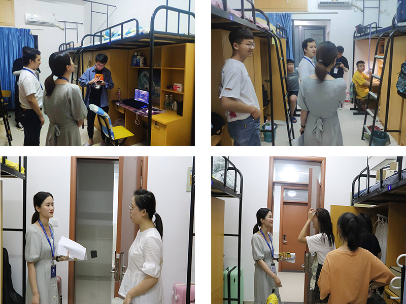 为了进一步了解同学们的宿舍生活情况,提升19级新生住宿安全意识。9月7日晚,艺术设计学院学工主管金亮带领19级辅导员吴芳芳及学院学生会成员,走进新生宿舍,开展卫生检查,并与新生谈心交流。