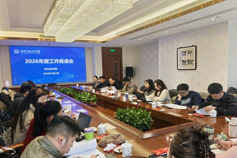 为深入贯彻落实学校“十五五”事业发展规划总体部署,系统凝练硕士点方向与科研体系建设,持续完善学风建设与学工工作体系,优化考核与管理机制,科学谋划2026年重点工作任务,进一步提升学科内涵建设水平与人才培养质量。1月21日下午,安徽信息工程学院艺术设计学院在芜湖市中央城大酒店三楼海晏厅召开“锚定‘十五五’发展新篇,夯实2026年建设根基”工作务虚会。副校长朱尚玉、艺术设计学院全体领导班子成员、主管人员、教研室正副主任及部分骨干教师代表参加会议,会议由副院长周建主持。(图为会议现场) 会议伊始,周建作会议开场介绍与总体部署,详细阐述了本次务虚会的召开背景,深度解读学校“十五五”规划总体要求,明确了会议核心任务的核心是凝聚共识、理清思路、破解难题,为学院“十五五”时期高质量发展谋篇布局,为2026年各项工作落地见效夯实基础,引导全体参会人员以高度的责任感和使命感投入到研讨中。随后,会议进入专题研讨环节,四个专题研讨小组同步发力、精准施策,围绕学院发展关键领域开展深入交流研讨,碰撞思想火花。专题